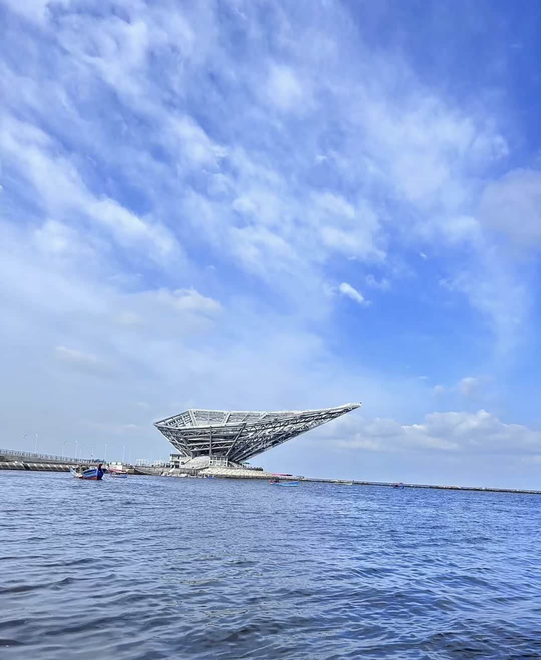 这是鲅鱼圈的鲅鱼公主雕塑简单给大家介绍一下:鲅鱼公主雕塑位于辽宁省营口市鲅鱼圈区山海广场西 1500米的海面上,是整个山海广场景区的标志性建筑。雕塑高60米,于2009年10月1日建成,通体为不锈钢材质,外饰面 11米以下为混凝士和沉箱结构基础,内部支撑体系为钢结构。相传鲅鱼公主聪明美丽,勤劳善良,经常营救海上遇难的渔民。她爱上了一个勤劳勇敢的小伙子,然而渤海龙宫的三太子也爱上了鲅鱼公主,三太子杀死了小伙子,鲅鱼公主得知后茶饭不思,气绝身亡。真是可歌可泣的爱情故事!