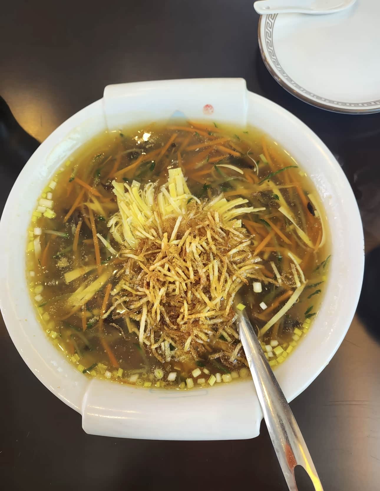 这个素烩汤是服务员推荐的,口感说真的太一般了,还没有我妻子做的好吃,黄瓜味太重,胡萝卜太硬,不好喝!