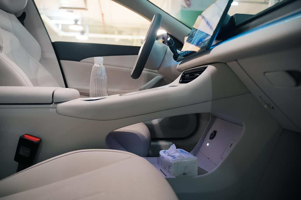 车里整体的空间利用也很充分,开车出去要带纸巾、包、雨伞、小孩的玩具、零食等等,中控台下面能放,扶手箱里也能放,车门上大大的储物格还能放,收纳空间非常多。