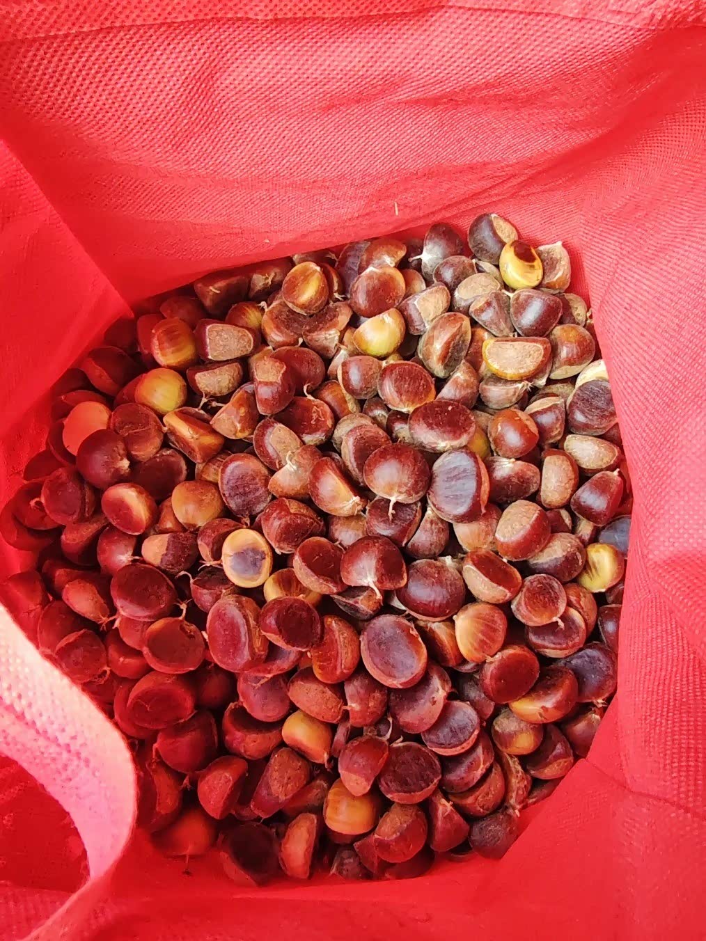 没多久就捡了一大袋,刚开始傻乎乎的直接装起来了,装不下了才想起来能直接把壳剥掉,立马就只有小半袋了。