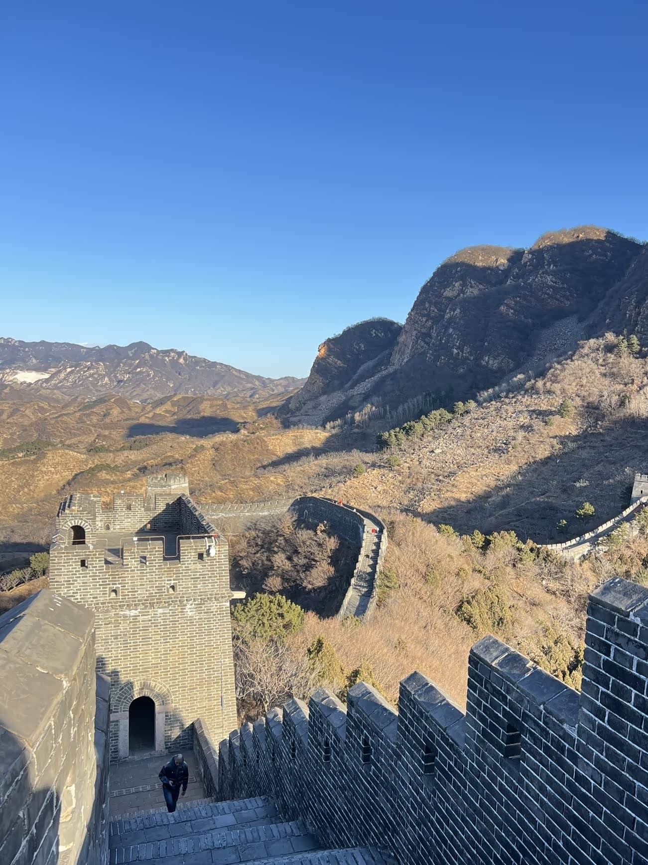 爬到高处时,孩子气喘吁吁地趴在城墙上,望着远方说:“妈妈,长城真长啊!”那一刻,我知道,历史不再是书本里的铅字,而是他亲手触摸到的城砖,是山风中猎猎作响的旌旗,是脚下绵延不绝的万里山河。