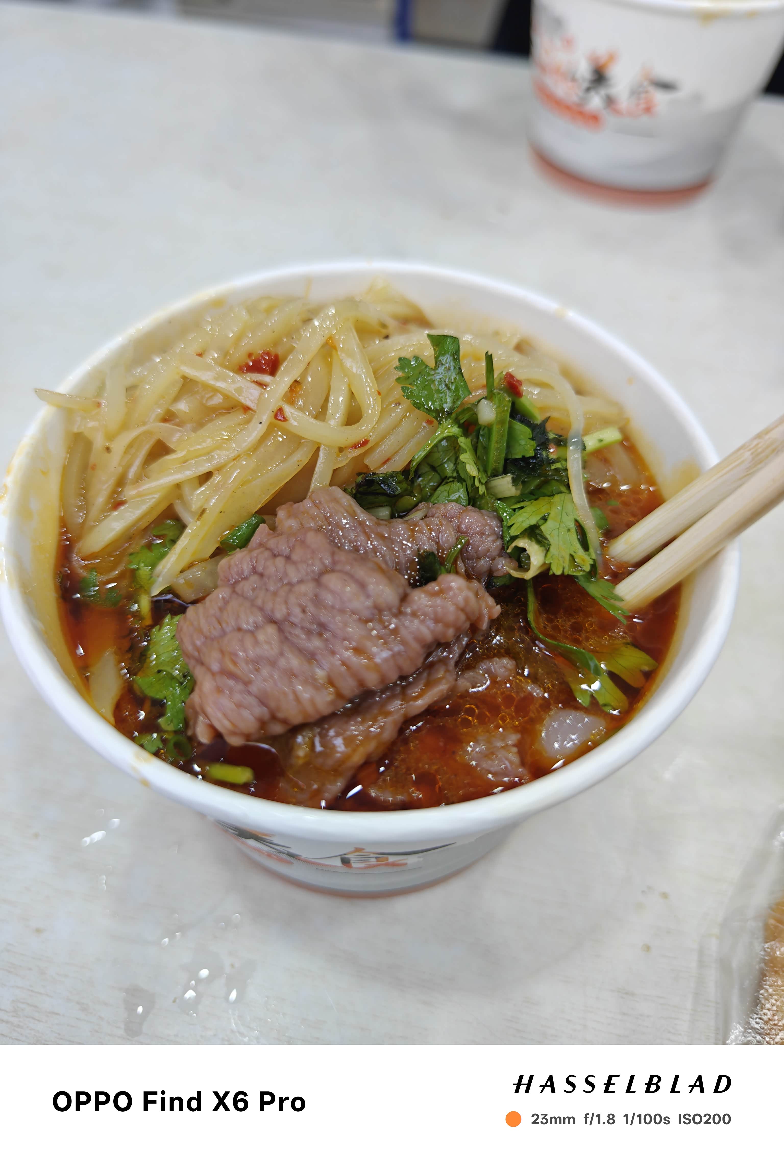 这是今天的正主,看看这个生汤牛肉真的非常嫩。而且吃起来很舒服,我还加了一点这家独有的土豆丝小菜。