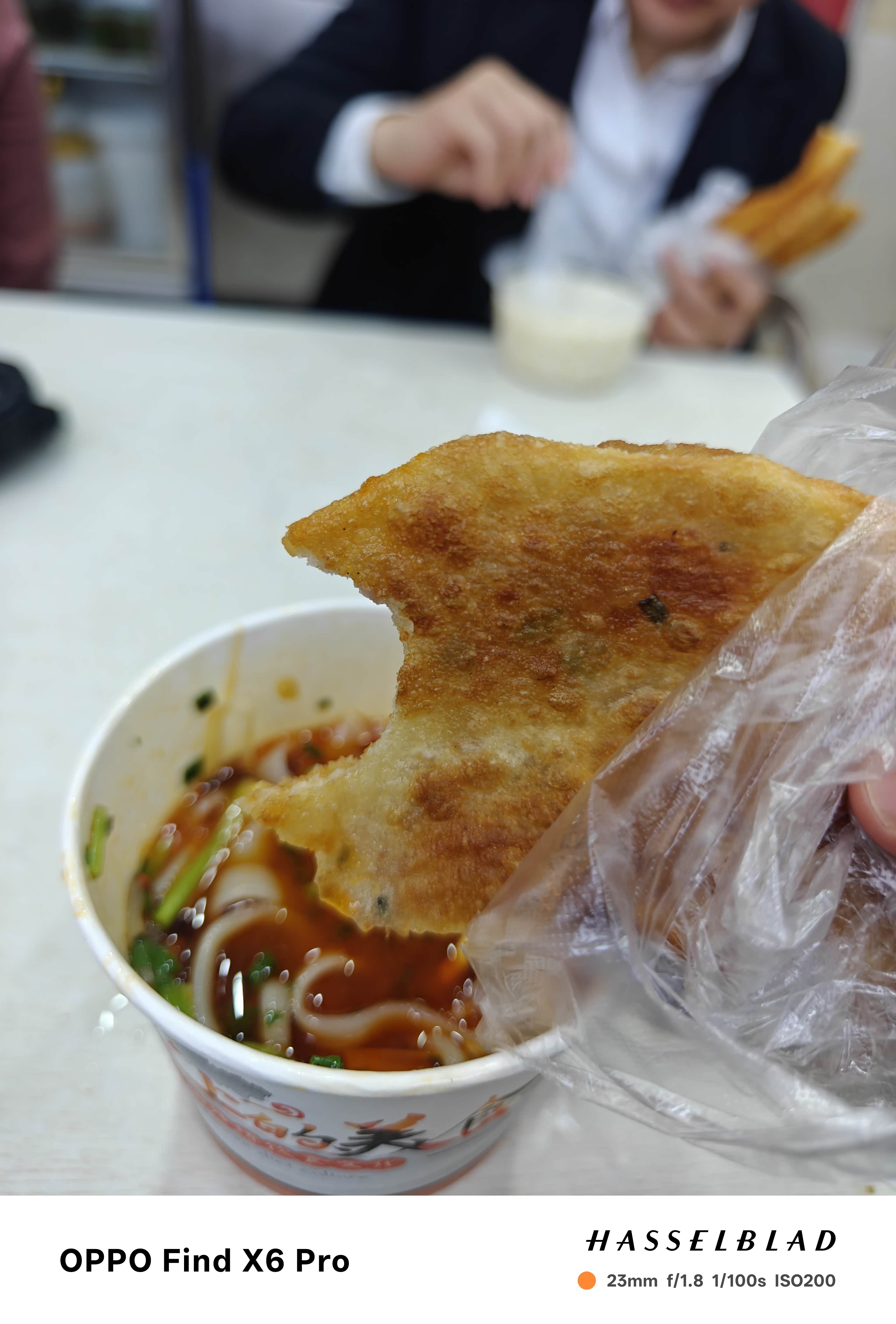 有没有小伙伴懂这一口的幸福?饼非常的脆,沾到汤里头前端是软的,里面是脆的。吃在嘴巴里面非常的享受。