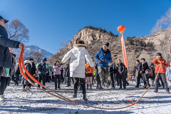 来张掖马蹄寺正好赶上了当地举办的第四届踏雪节,热闹纷呈的冰雪活动和民俗娱乐让我深刻感受到了张掖肃南县冬春旅游的魅力以及生机活力,畅游马蹄寺的徒步,以及像集体拔河、双人拉爬牛、顶杆子、跳绳、摸毽子等运动,吸引数千人参加,很难想象这样的热情实在零下十多度的马蹄寺,让人忍不住跃跃欲试。