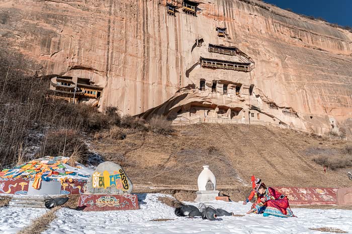 来过很多次甘肃,却是第一次去张掖马蹄寺,而且还是千里冰封的冬雪季节,不得不说,有一种震撼到心的感觉,尤其是普光寺的三十三天洞,21个石窟分七层整齐排列在百米高的悬崖上,远看就像一座宝塔镶嵌在绝壁中央,雄伟壮观、气势磅礴。当然让我震撼的绝不仅于此,马蹄寺山青、水秀、峰奇,尤其冬季雪山景观与雪原风光,以及马蹄寺踏雪节的举办,肃南冰雪激情的魅力与火热让人鼓舞和温暖。老规矩,先上一段预告片,看看这样的马蹄寺美景,会不会让你的内心种草?