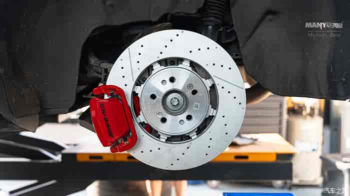 1、GLE450车重超过2.2吨,原厂刹车偏软,高速和城市拥堵路况下,制动信心不足。所以我选择AMG原厂的前六活塞、后单活塞浮动卡钳套件。这不仅是视觉提升,更是主动安全的质变。六活塞能提供更强大、更均匀的制动力,热衰减性能也更好。