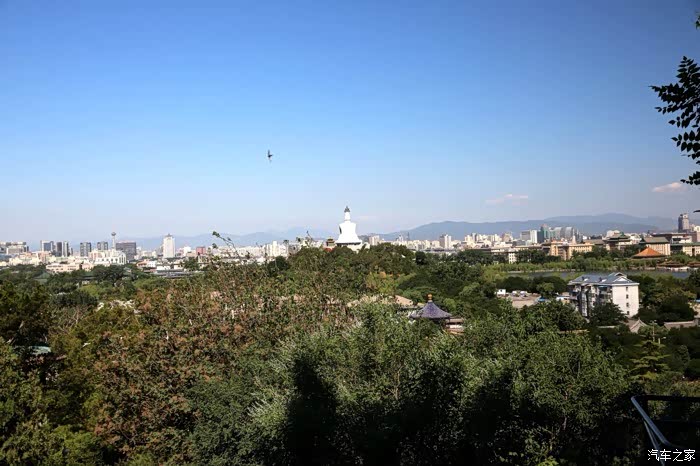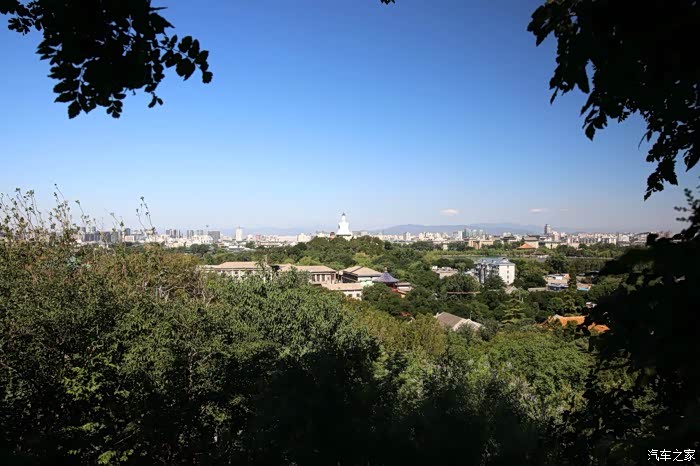 由景山公园西门进入 在富览亭上拍摄北海公园白塔