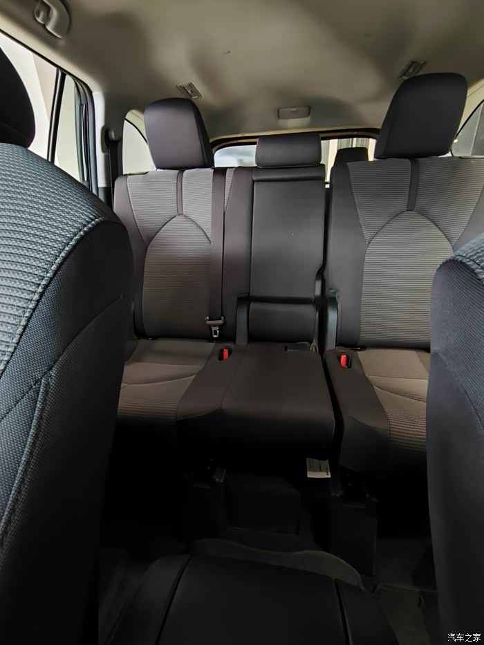 在前排内饰这块,这车还是没有融入新能源的设计元素,还保留着丰田那种“朴素”的内饰风格,座椅都还是针织的。我还是觉得这个仪表台的屏幕比较让人满意,毕竟带有一个遮阳檐,不至于强光刺眼。中控屏幕和下方的实体按键交相呼应,感觉就是目光所致都是软包或者内饰板,除了屁股下是针织的。