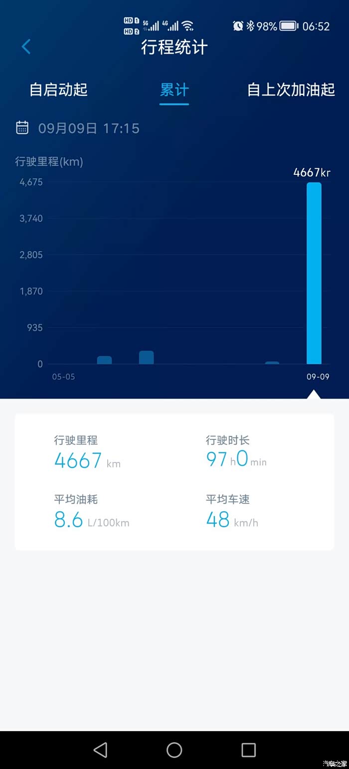表显油耗。一半高速一般地方道路。路况和驾驶习惯应该不错的,基本上1个人开,偶尔满载或两个人。