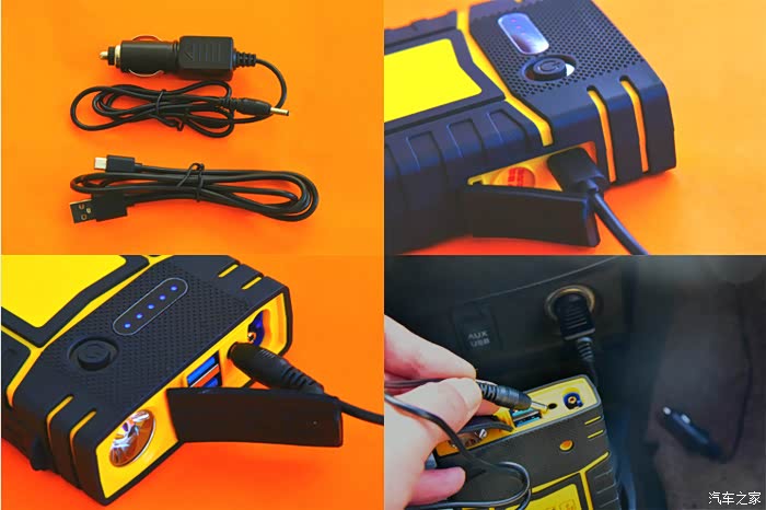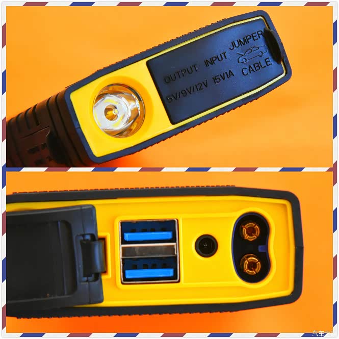 3、能够给手机智能充电、还有便携车载冰箱接口设计。双输入充电口设计等等使这款汽车应急电源的功能更加强劲多用。特别是双U口输出设计,能当充电宝使用。方便车主最大化利用此款应急电源。