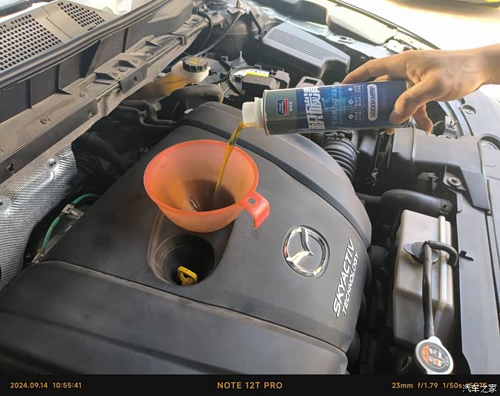同村兄弟的这台马自达CⅩ-5 当年是我跟他在4s店提车的,一直在4s店做常规保养三年之后就打算出保了,买车时赠送的机油保养套餐油品他感觉很一般,开起来车子动力响应很慢,这次特意给他用上了壳牌的超凡喜力0W20全合成机油看看发动机动力响应是否有所改善。