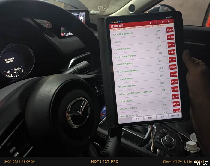 清洗节气门和更换电瓶后,必须要用电脑进行复位检查有无故障码。