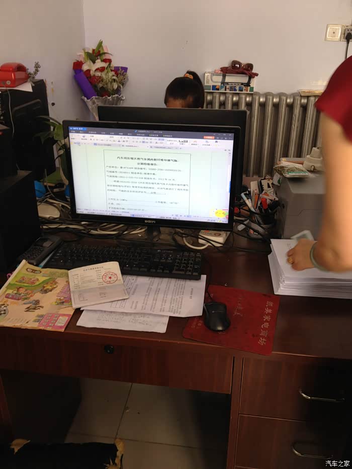 先说说一说我的车吧,桑塔纳志俊,2011年9月份购买,在2012年6月份改的天然气,当时改气的时候跑了10000左右,现在已经平安行驶了75000KM了。依然表现很出色,这不是前几天气瓶检验日期到了,该年检了,如果不年检,过了检验日期以后,电子标签在CNG加气站是扫描不出来的。我在年检的前一天提前和检查站的工作人员电话联系了一下,周六周日也可以正常审验,大约3个小时,因为上午还有别的事,所以我赶着他8点上班以前就到了检验站了。对了 现在的检验规定是 3-3-2-2-1-1…… 就是新瓶刚装的时候,可以使用三年,第一年年检后,再使用三年,第二次年检可以使用2你那………… ,好像是15年的强制报废期限,说是与车辆的报废标准一样。但是那个工作人员也说这个不一定,说不定三年以后规定就改了。对了,我再年审的时候遇到一个事,有一个车辆改装的气瓶才使用了不到1年,气瓶上面出现了一个黑色的袋装。然后加气站说是气瓶有问题,不给加了。所以希望大家如果想改装的话还是去一些正规的改装店吧。好了不多说了,现在开始上图。第一个是车辆的现在行驶里程 改气后已经跑了7万多了 一直勤勤恳恳的