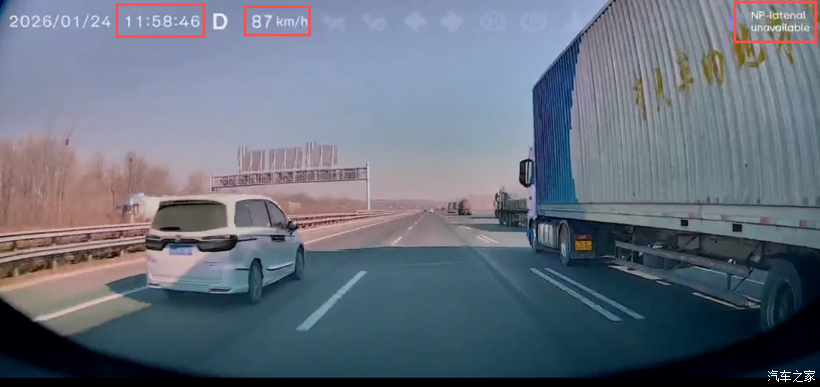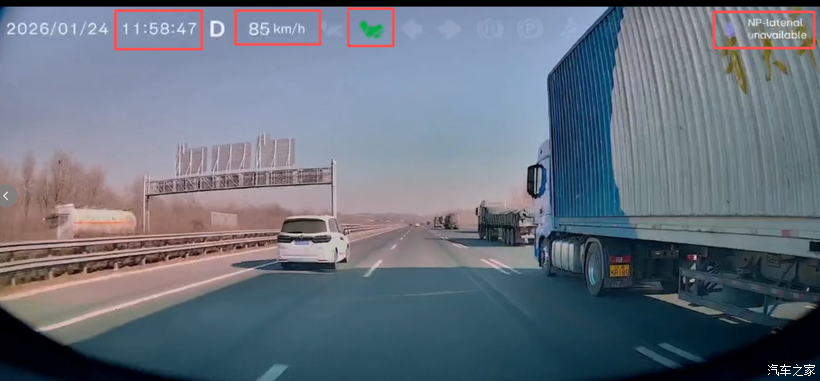 1. 辅助驾驶功能有较大安全隐患。京哈高速使用NOP,超越右侧大车时(这里大车指的是13米以上加长货车或者集装箱车),发生三次紧急刹车的情况,时速从105左右直接降到85左右,很吓人,好在后面没有车,否则肯定追尾。只能自己踩油门把速度提起来。总结这个情况触发的原因,是右侧车辆超长。但是不理解在没有车辆侵入的情况下,为什么要刹车。已经截取其中一次行车记录仪视频(前两次没有记住时间,就没回去找视频)