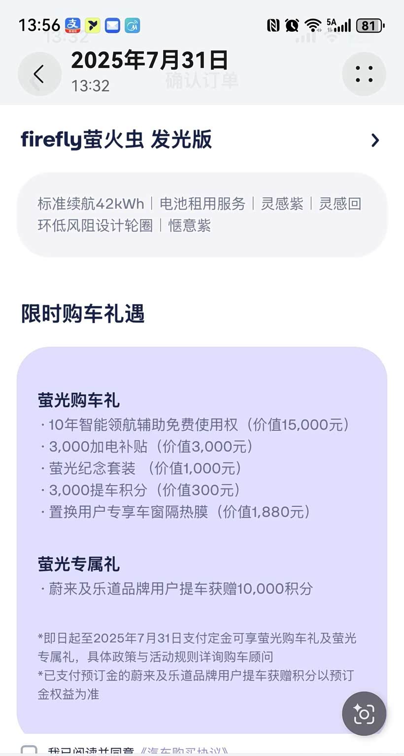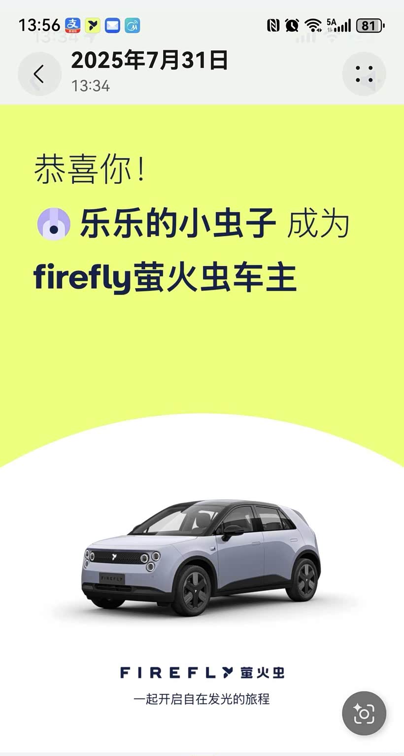 最开始还是打算ES6或者ET5T,车她都挺喜欢的,也试驾了很多次。但还是觉得大,要求就要小、方便,不限号(纯电)。于是的萤火虫进入了选择单。