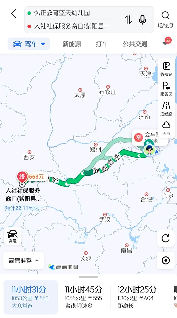 行程1053公里!途径江苏省、安徽省、河南省、湖北省、陕西省,真是一段不短的行程。