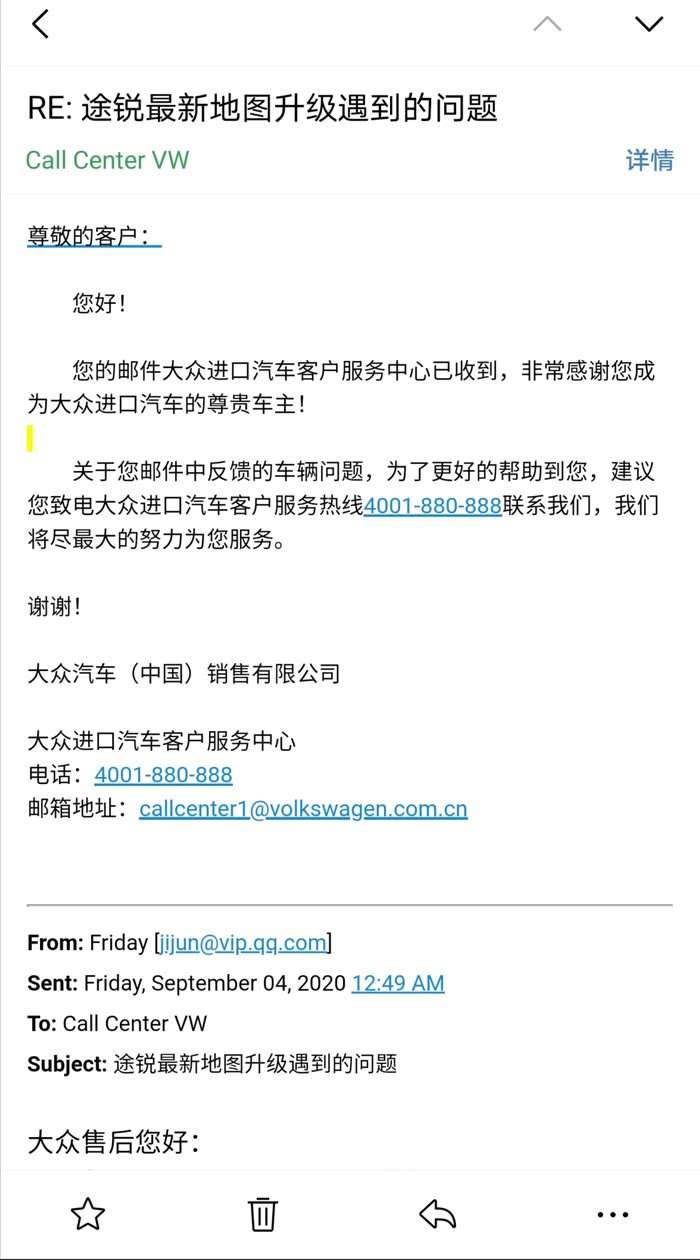 发邮件咨询了,让直接打400电话,打了再来回复。