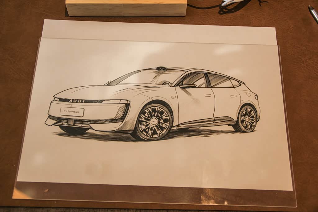 下午的手工劳作课,是用笔触在亚克力板上将奥迪E5 Sportback描绘出来,这看似简单的作业,实际难度非同小可。