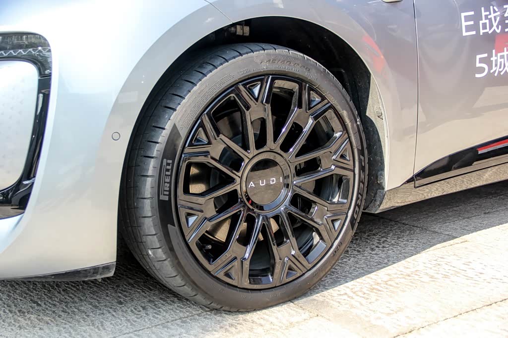 20英寸的运动款轮圈把车轮拱得满满当当,视觉冲击力很足。而且采用了前窄后宽的“鸳鸯胎”设计,这种配置常见于性能车型,不仅提升了颜值,还为后续的操控表现打下了基础。