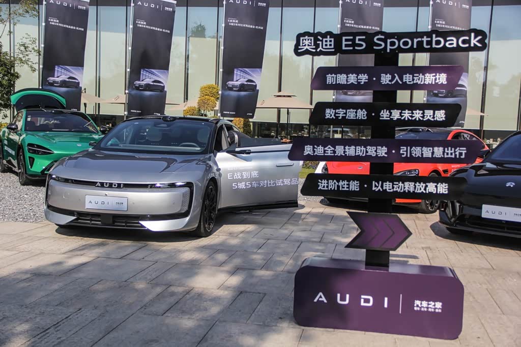 上周末,受邀请来到了位于杭州的E战到底奥迪E5 Sportback 5城5车对比试驾体验活动现场,主持人作开场以及品牌宣传顾问作车辆讲解。