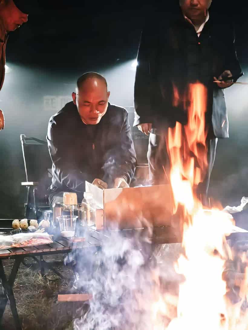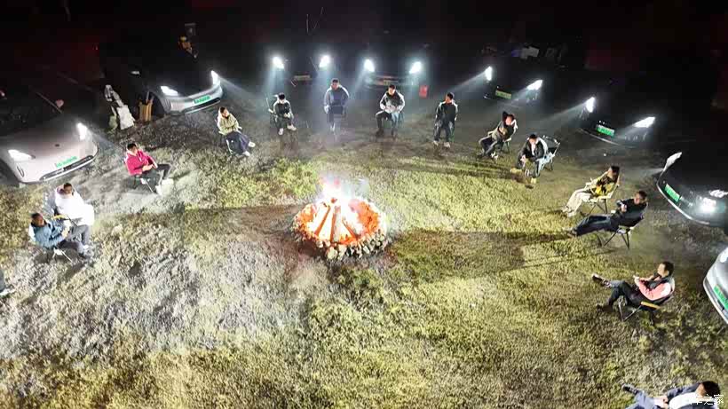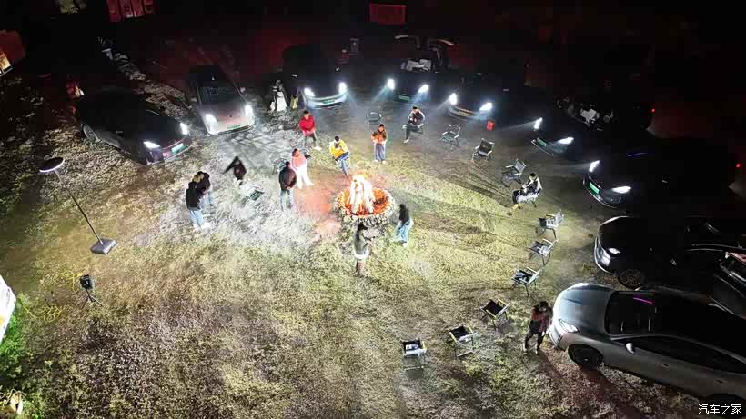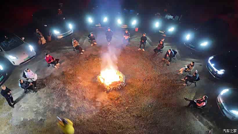 火光中,不远处整齐停放的昊铂车队静静伫立,“车标闪着我的倔强”,正如我们这群因车结缘的同路人,怀着对生活的热爱奔赴山海。“热乎话融了寒冬的霜”,大家聊用车心得,谈旅途趣事,分享生活点滴,篝火的温度与情谊的滚烫,让这个夜晚格外难忘。