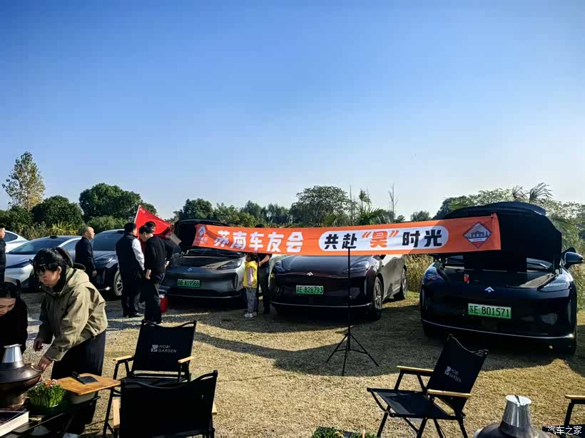 傍晚时分,昊铂车队沿着乡间小路缓缓驶入营地,“流畅弧光裹着锋芒” 的车身在夕阳下格外耀眼。车友们默契分工,搭帐篷、备食材,弹夹电池带来的外放电功能派上大用场,煮茶、烤肉一气呵成,欢声笑语间,露营地成了热闹的 “昊铂家园”。