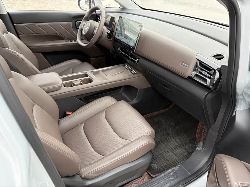 空间没得说,巨能装,二排独立座椅带扶手很舒服,三排坐小孩或瘦点的大人短途没问题。电耗看脚法,温柔开市区能到15度/百公里左右,折算下来续航差不多打8折。但要是跑高速或者开猛点,电耗蹭蹭上20,续航就有点焦虑了。