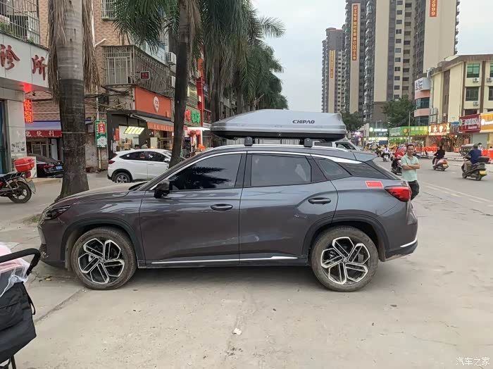 嘻嘻。最近寻思着改装一下。于是在网上淘了车载行李箱。600大洋买了一个行李箱。历经2多小时自己安装上。因为有小孩经常后备箱东西放不下。什么小孩的安全座椅啥啥的。安装上外观貌似不影响还挺合适的。小one中规中矩的感觉。