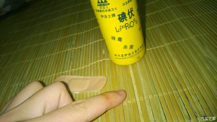 作为医学生,寝室的医用器具肯定不会少,虽然是小问题,但避免感染,我还是先清洁伤口,再喷了一些碘伏杀菌,用创口贴包上,继续干......!