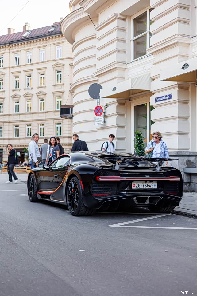 纯黑色,Supersport是布加迪车型里的最强性能版,并且Chiron Supersport保持了目前的速度记录,这个长尾真的太优雅了