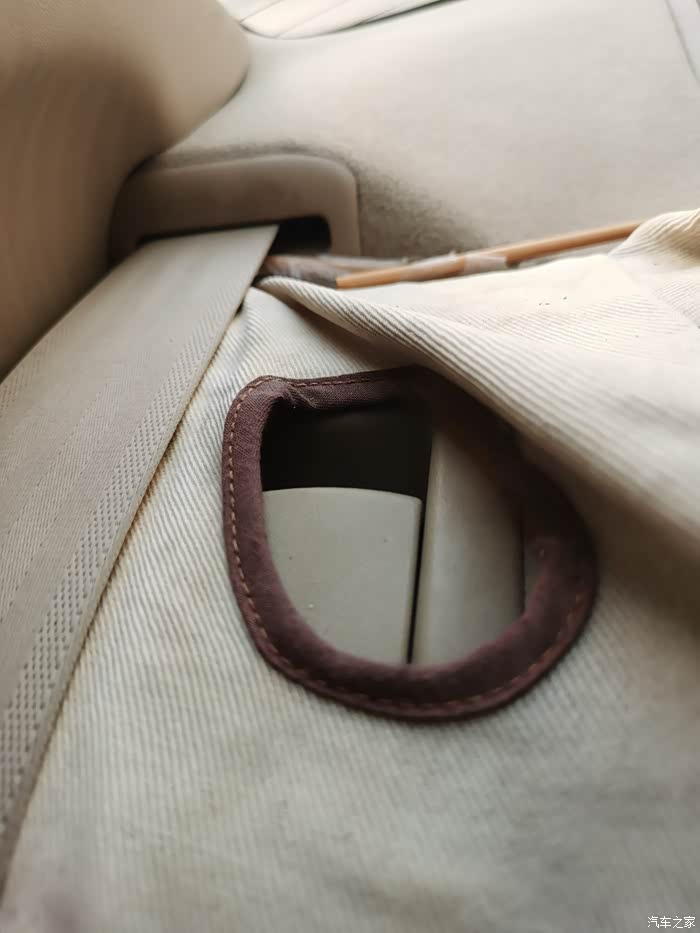 这是后座上的解锁开关,另一侧还有一个,把两个开关都扣开,座椅后背就可以向前翻倒了。座椅后背复位时,也要听到一声“崩”锁扣卡进锁环中的声音。