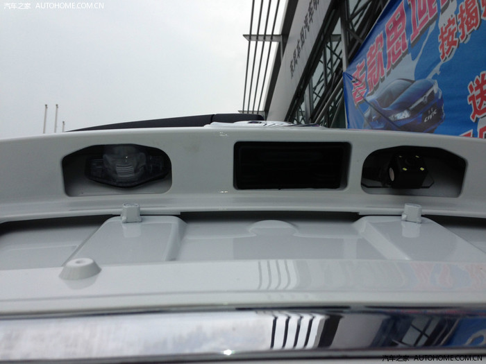 后备箱门牌照上方的细节,摄像头是加装的,就是右边那4个黄点点的东西。高配的摄像头是装在左边牌照灯右边的位置(专门有一个开口位置),低配如果要加装的话就是加在右边的牌照灯上,把灯罩拆了,直接罩在灯上面。我的车装好摄像头之后左边的牌照灯没固定,就晃荡在那,后来我第二遍检查的时候才发现,4儿子们你们要用点心啊,三四个人搞还出这种低级失误。