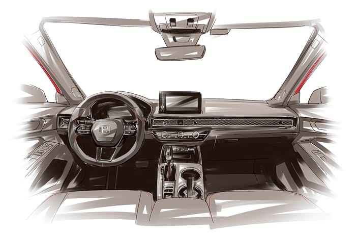虽说没有十代思域刚出来时的惊喜,新车的外观看点也有不少。细长平直的大灯通过格栅连接,高功率车款采用矩阵式设计,搭载全LED光源,低功率车款则采用透镜大灯加LED的组合。主要构成多为平直折线,整体风格向中级车靠拢,前脸布局宛如缩小一号的英诗派。