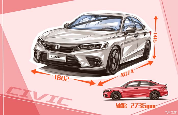 十一代思域的长宽高分别为4674,1802,1415(mm),轴距为2735mm,相比于上一代,轴距足足增加了35mm,这不禁让我对它的乘坐空间萌生期待,当然,空间表现等下再说。