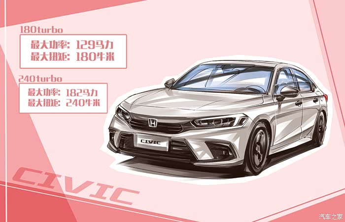 说了这么多,终于又到了喜闻乐见的动力时间。新思域延续了第十代车型的架构,取消了手动挡车型和饱受诟病的1.0T三缸机,取而代之的是全系四缸1.5T匹配模拟换挡CVT变速箱,在车款上以低功版180turbo和高功版240turbo加以区分,180turbo车款最大功率129马力,峰值扭矩180牛米,240turbo高功车款可达182马力,同时输出峰值扭矩240牛米。光看账面数据,也许取消了三缸机是一个好事,但没了手动挡,入门价格可能要蹭蹭涨。