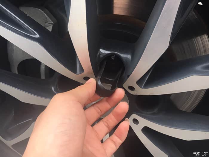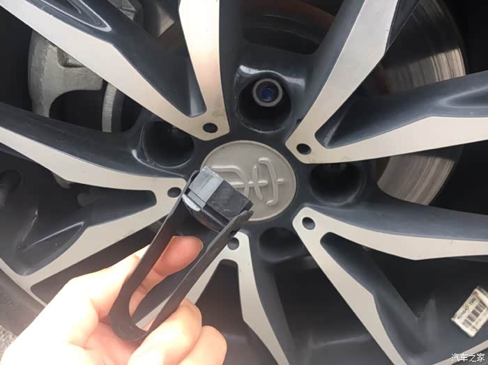 下面到了架车环节,架车之前一定要先松开轮胎螺栓,首先利用轮胎螺栓帽卡夹拆卸轮胎螺栓装饰帽