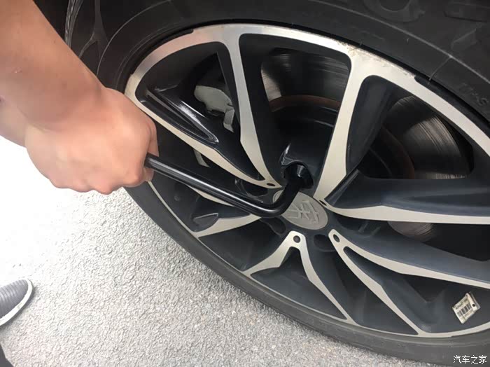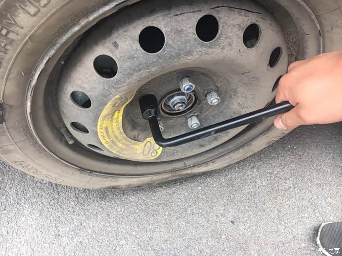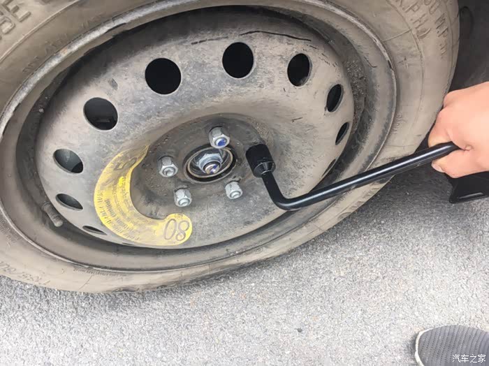 然后用轮胎扳手依次松开轮胎螺栓即可,暂不用拆卸
