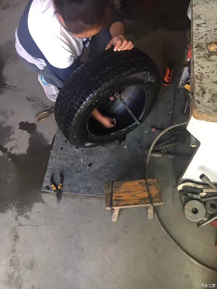 对角禁锢轮胎螺栓至标准扭力,确保行车安全最后一步,轮胎装车,赶紧找地方补胎去吧