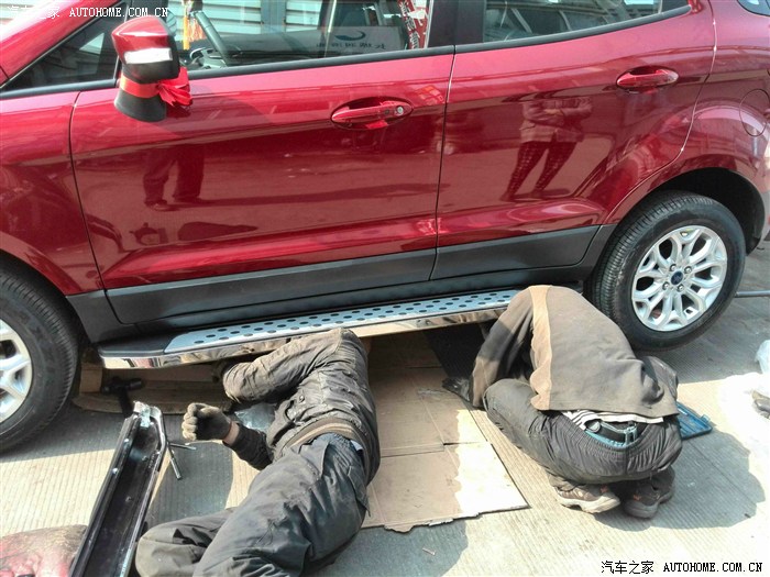 师傅正在安装侧踏板,师傅辛苦装了2个小时,通过亲戚找的师傅,没收费