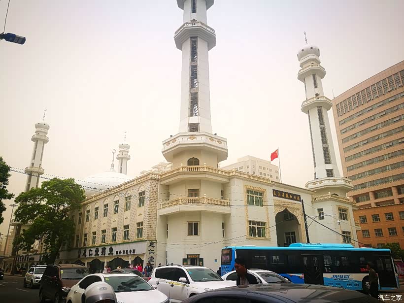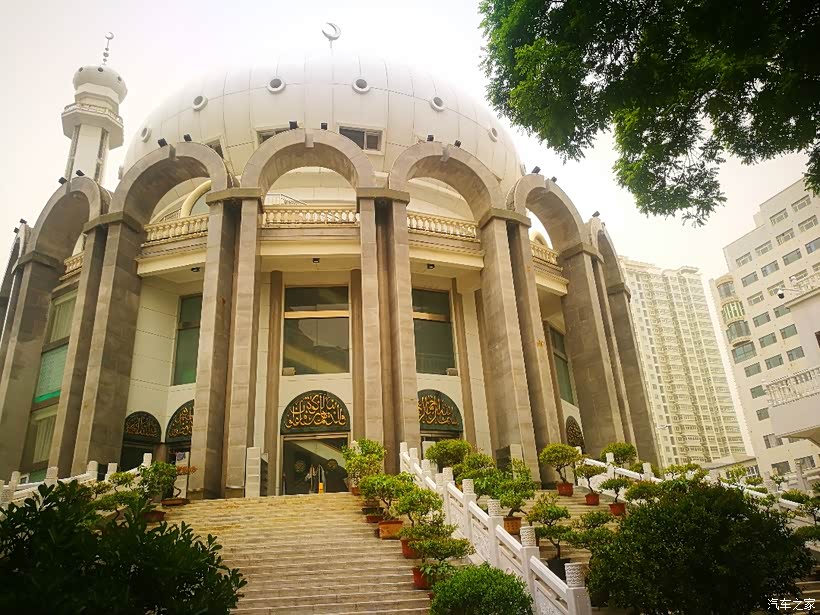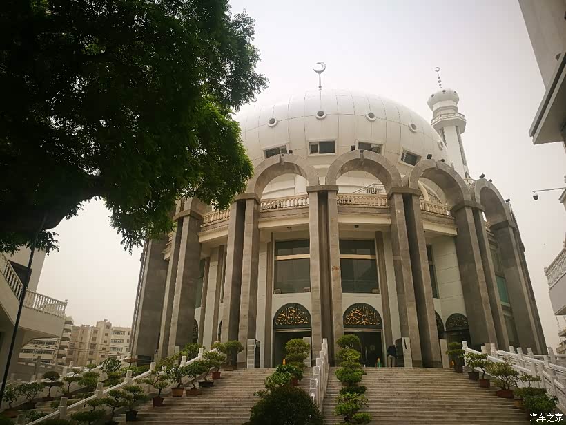大殿由20个高17米的圆拱门紧紧围绕,中心有一直径约25米的扁圆壳。采用圆形,一方面为照顾五条于道汇集处从各个角度的立面观瞻,另方面表现各民族穆斯林群众的团结向上。20个“虚”的拱门,拥起一个“实”的太穹顶,再现伊斯兰建筑上实下虚的特点,扁的大跨度穹顶和细高的拱门又体现了现代的技术水平。在装饰方面大量使用了穹顶和拱门及大面积的装饰图案,立面窗户全部采用铝合金框架(用青铜系列着色阳极化膜处理)。