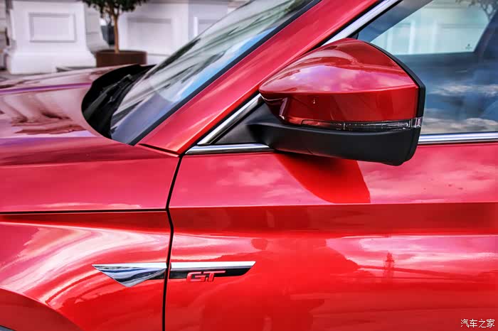 熏黑式直瀑进气格栅,翼子板附近银色饰板新增了红色GT标识,腰线采用明显的折痕设计,BC柱采用涂黑设计,运动元素的设计必不可少。