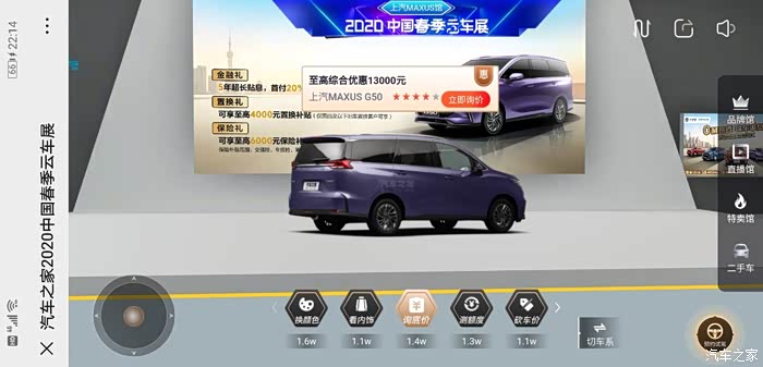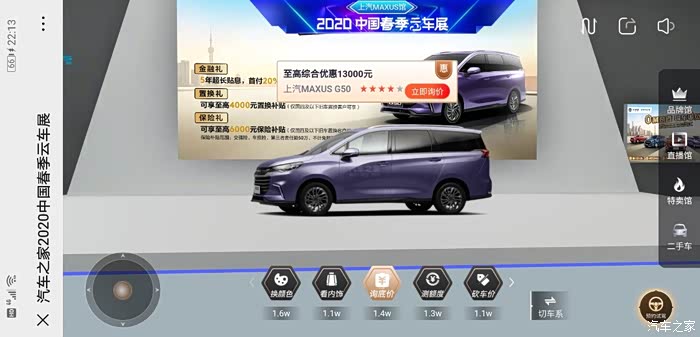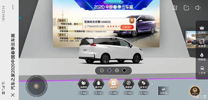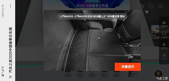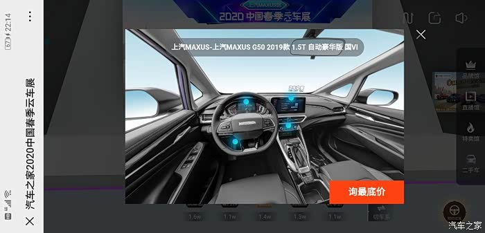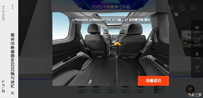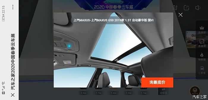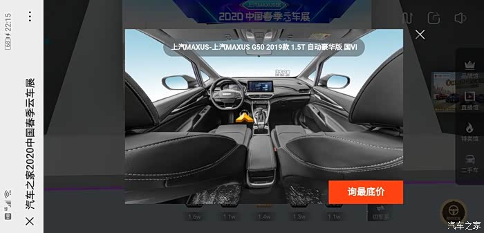 没有线下车展,很多跟我有同样想法的,也只能通过论坛,或者其他渠道了解一下这款车了。不过现在跟大家推荐一下云车展,就是线上车展,这不,汽车之家APP里就可以直接初步了解一下G50。