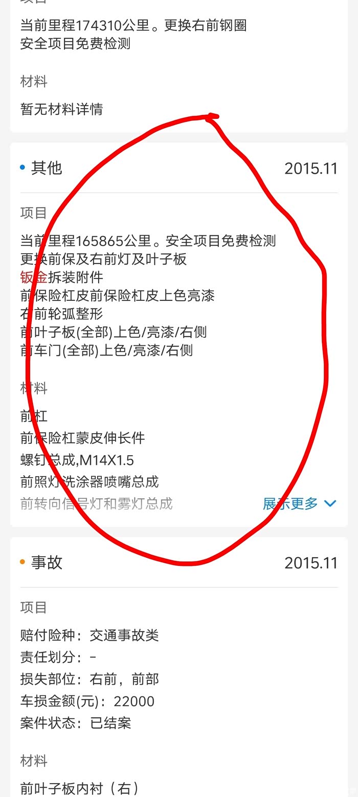 我通过wx联系上了那位老哥并询问他在某鱼上挂的赛威的车况,我拿到车架号后查了然后发给他看之后我说这是一辆调表车,那老哥也很惊讶又问他车的来源他说是在22年找车商买的那时表显12万多公里,那老哥当时还有点不相信我说大不了你找一家汽修厂读一下变速箱最后他说这车不想再折腾了已经打算卖了,(我估计差不多50w公里的车毛病不少了),查看这QXB查的车况这么算的话18年跑了30多万到了22年应该也差不多40万公里左右了,大大小小的事故数不清这也应征了这车是由不同驾驶技术的人开的车