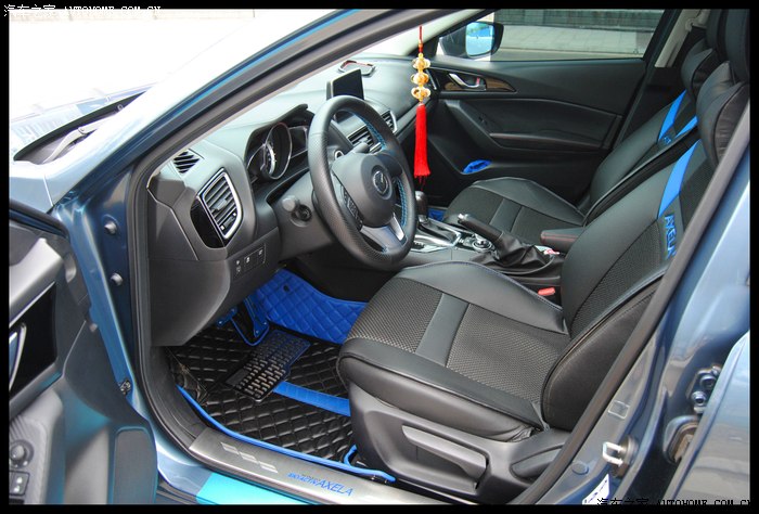 效果那是杠杠的,蓝色的脚垫,蓝色的座套,加蓝色的门槛条,最关键还是蓝色的车,那是相当的帅气!!!