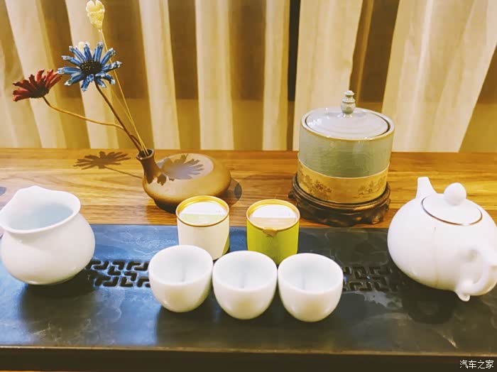 【住】民宿有12间客房名字,据主人说是来源于深奥古村的12间祠堂名,另一间江南忆,则是对江南民宅的温婉阐述…毓秀、棣萼、写心、江南忆,一家人入住了四间不同房型。毓秀与棣萼是榻榻米,简单干净,清晨起来在公共小客厅听着应景的雨声特别特别有感觉;写心与江南忆,是在二楼的套房,推开木窗就是黑瓦屋顶和锦鲤小鱼塘…每间房内都配了茶具和小罐茶:龙井和正山小种,匹配着杭州人爱喝茶的属性,在江南忆的茶桌上发现了一个像香罐的陶器,是个八音盒,评弹细雨声,转起来秒变书香门第氛围。