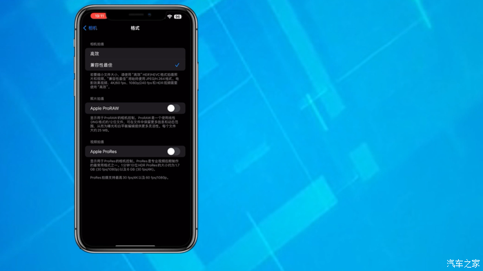 我们打开手机,先进行手机录像设置,点击格式选项,选择兼容性最佳