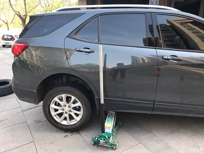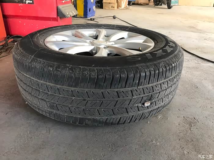 一会功夫师傅没找到这么大的蘑菇钉,说只能建议换轮胎了,这时我想到家里还有一台备用的原车轮胎,尺寸一样都是225/65R17的,刚好配套,于是我打车回家拿轮胎,将车暂时停在修理店