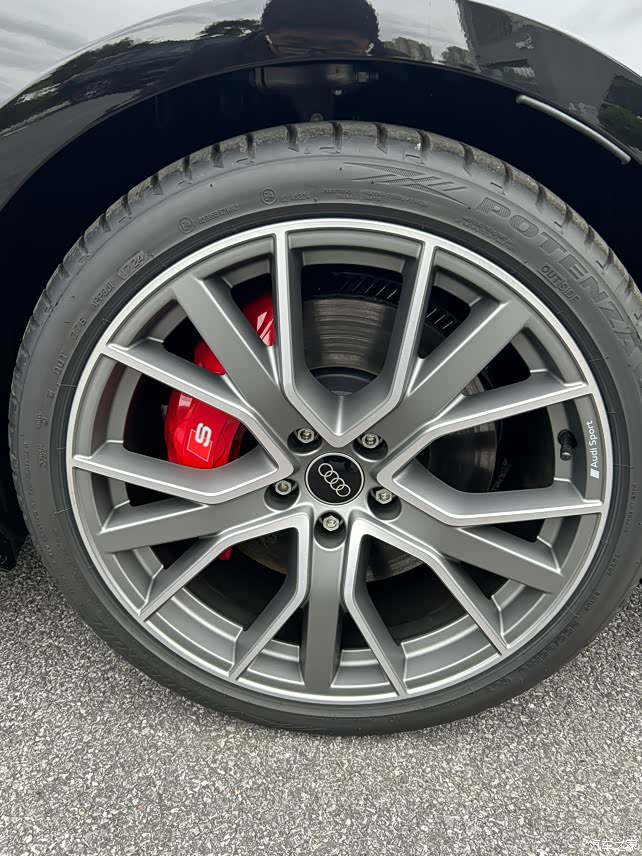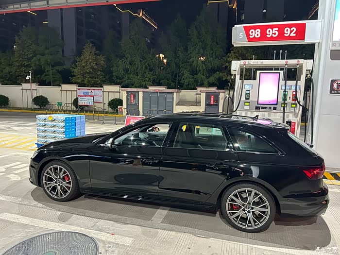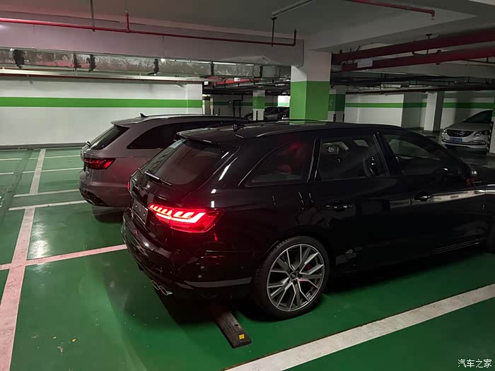 我个人一直认为审美因人而异所以没有绝对的美以及绝对的丑,但是B9.5奥迪S4的外观还是不如他上一代老大哥B9来的霸气 犀利!9.5设计也更加圆润了。纠结了一段时间还是选了一个不会错的颜色 奥迪传奇黑,在2021年我从销售口中得知黑色S4加价会比普通色贵一点的时候我就知道它肯定是站在大众审美的顶端让所有人都想得到的一款颜色。外观比起普通的A4Avant变化还是有的,S4Avant标配的黑光包和拓展黑光包分别对应于车的镀铬装饰条和中网车标的熏黑,另外19寸的轮毂和红色的六活塞卡钳外加上尾部四根银色排气管仿佛都向旁人诉说着这台“A4”是与众不同的。车轮方面19寸的轮毂搭配上255 35 19的轮胎以及红色的六活塞卡钳,饱满养眼。这台车的自动矩阵大灯和动态尾灯登车离车欢迎灯光特别有仪式感每次登车之前总会让我驻足留步看一下这短暂的灯光秀。自动远光灯打开时几何光束从大灯内射出最远点不会超过前车牌照(经过我的测试前车为摩托车照射角度也一样),照射范围和铺路性更是没得说,只能说不愧是一对大灯要9万人民币的东西。让我夜间高速行车安心感拉满。