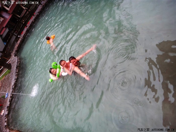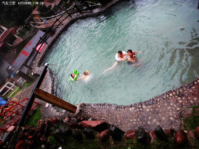 层层叠叠的温泉,从35度到42度,我们一个个泡过来,下雨了还在继续泡呢