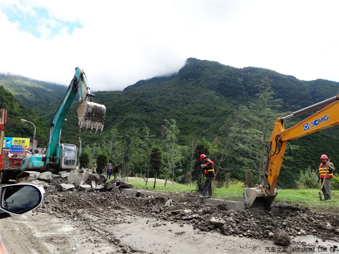 暴雨后遗症——还没开始上山,又堵上了,昨夜的暴雨带来泥石流,山体塌方,道路堵上了。在等待工程车来清理,也许到下午才能通车,
